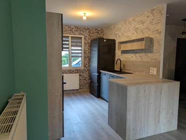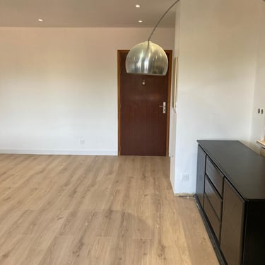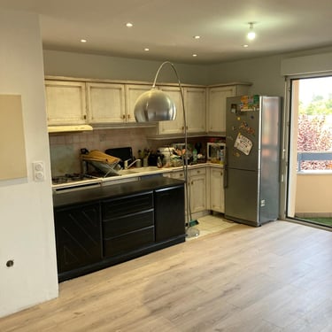 Découvrez la rénovation de cet appartement avec l’ouverture de la cuisine sur le salon grâce à la démolition de la cloison séparative, pour un espace de vie plus moderne et ouvert. MDV SERVICES a créé un éclairage par spots au plafond, remplacé les appareillages électriques, réalisé les peintures et posé un parquet stratifié pour un intérieur chaleureux et contemporain.