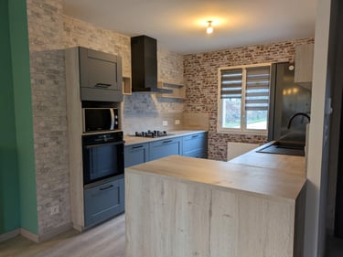 Découvrez une petite réalisation avec la pose complète d’une cuisine, incluant l’installation de la crédence pour une finition propre et moderne. MDV SERVICES a également créé une double prise pour adapter l’espace aux besoins du quotidien et améliorer le confort d’utilisation.