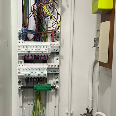 Découvrez la réalisation d’un tableau électrique entièrement repensé et câblé dans les règles de l’art, pour une installation claire, organisée et conforme aux normes en vigueur. MDV SERVICES a sécurisé et rationalisé l’ensemble des circuits afin de faciliter les interventions futures et garantir la protection du logement.